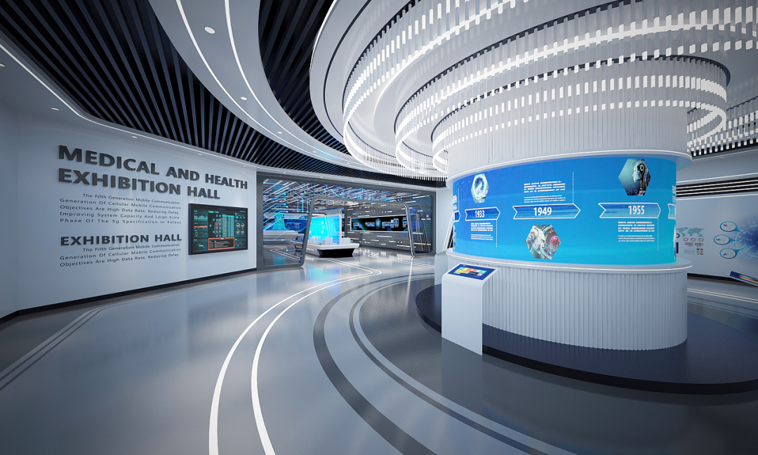 曲線代表了動態(tài)與柔美,不同于直線的中規(guī)中矩,曲線表現(xiàn)得更加自由與灑脫,在展廳應(yīng)用當(dāng)中能夠帶來更多的可能性。