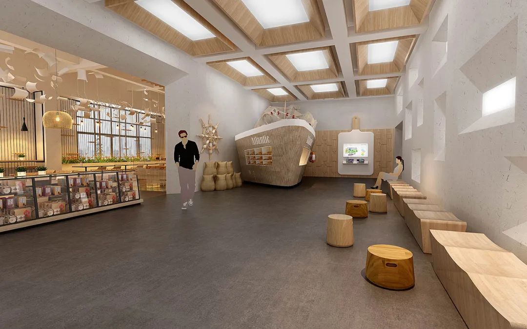 折線元素更具有張力感,表現(xiàn)形式更為夸張,折線的折角能表現(xiàn)出直線與曲線所缺少的力量感,能賦予展廳活力與生命。