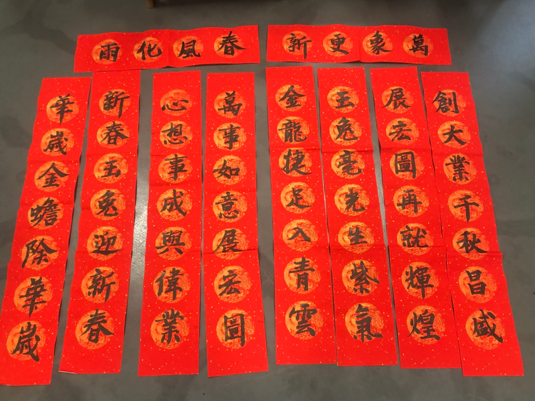 書寫春聯(lián),是筆尖上陳久彌香的年味,翰墨飄香,寄托了對美好生活的向往。陳聞老師寫下一幅幅凝聚美好愿望的春聯(lián)和福字,像一張張喜慶的“紅地毯”。一幅幅寓意吉祥的春聯(lián)躍然紙上,寄托著辭舊迎新的美好愿望。