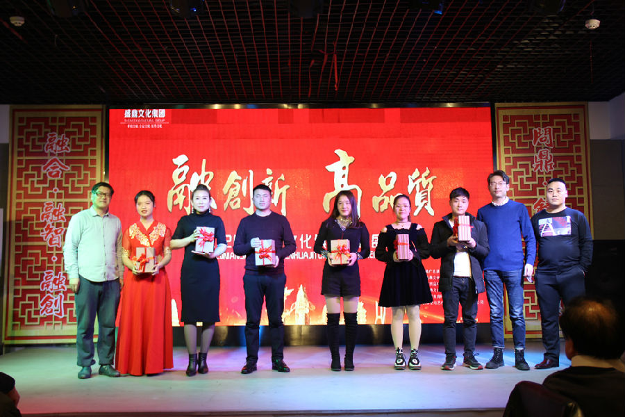 同時,受邀參加本次年會的嘉賓還有鴻運(yùn)地產(chǎn)集團(tuán)總經(jīng)理劉韌銳先生、甘肅省書協(xié)副主席、蘭州市書協(xié)名譽(yù)主席陳永革先生;蘭州市書協(xié)顧問金福祥;蘭州市書協(xié)顧問劉英先生;蘭州市書協(xié)副秘書長馬元先生;甘肅省書畫家協(xié)會常務(wù)副主席孫丕俊先生等十幾位書畫家,他們不僅觀看了盛鼎文化集團(tuán)家人們精彩的節(jié)目,并向集團(tuán)贈送了自己的書畫作品。同時,隴上書法名家剪紙世家的傳承人楊榮祖先生雖然不能親臨年會現(xiàn)場,但他向集團(tuán)贈送了自己精美的剪紙作品表示祝賀。