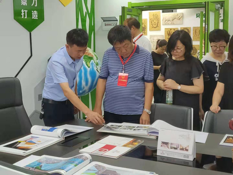 調(diào)研組一行參觀了盛鼎文創(chuàng)產(chǎn)品區(qū),走廊文化墻,對產(chǎn)品的新材料、新工藝、環(huán)保性、創(chuàng)意性表示贊美。
