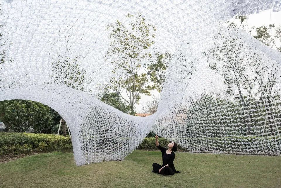裝置藝術(shù)的手法與自然的元素碰撞后,重新詮釋與結(jié)合,使得自然環(huán)境、裝置、景觀,和諧地形成呼應(yīng)與延續(xù)的對話關(guān)系,進(jìn)而呈現(xiàn)出對未來充滿想象的生活方式。