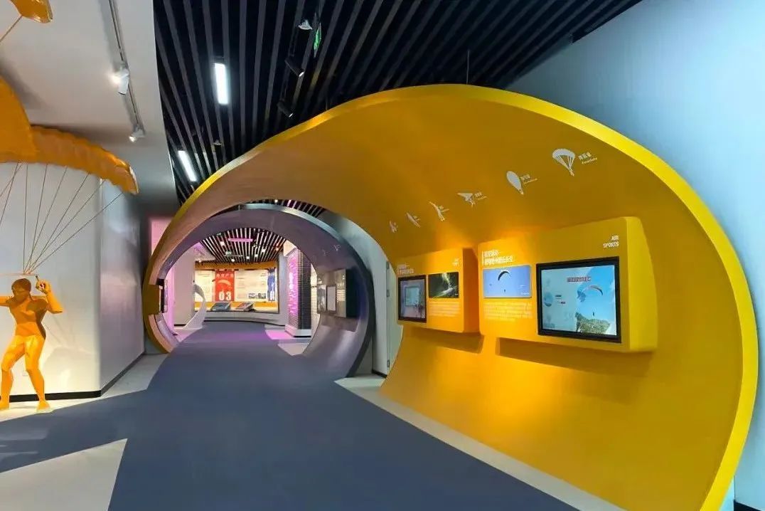 因此,色彩融合也是關(guān)鍵。門洞的顏色可以選取相鄰展區(qū)的主色調(diào)進行調(diào)和,創(chuàng)造出和諧的過渡效果。比如,從一個以藍色為主調(diào)的科技展區(qū)進入以黃色為主調(diào)的創(chuàng)意展區(qū),門洞可以采用藍黃漸變的色彩方案,讓觀眾在視覺上逐漸適應新的色彩氛圍。