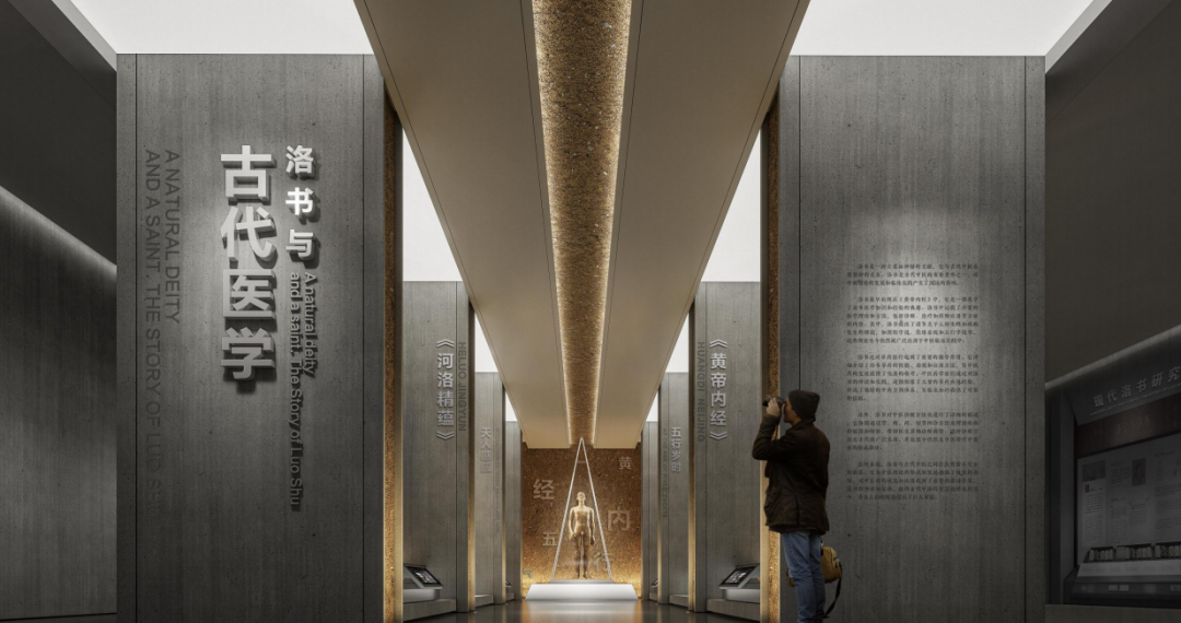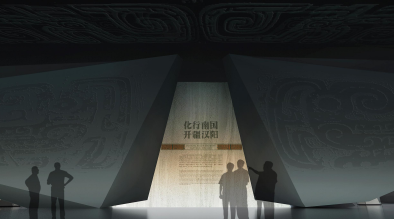 過渡門洞需要很好的兼顧“顯性”和“隱性”這對天然矛盾。顯性是需要有明顯的指示性,需要幫助參觀者明確內(nèi)容板塊的更迭。而隱性是需要與空間進行融合,不能破壞空間的敘事氛圍。