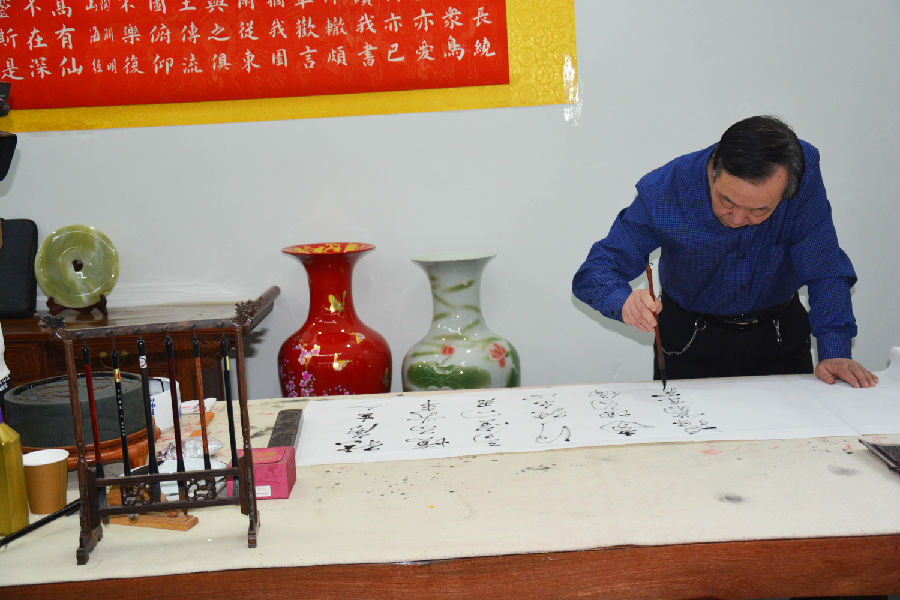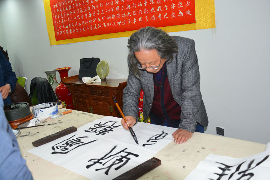 茶話會(huì)結(jié)束后,大家宣紙研墨,在輕松的氛圍中進(jìn)行書法交流。