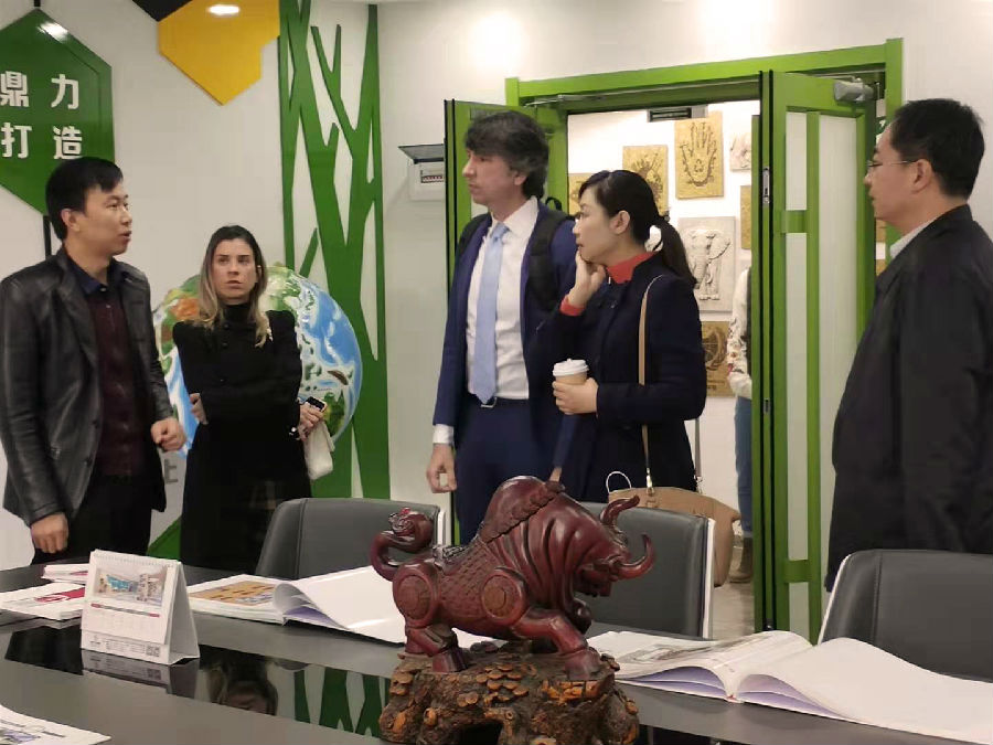 隨后,參觀了盛鼎書畫室、文化走廊等。在文化走廊,巴西雅博阿唐市就業(yè)、資質(zhì)及創(chuàng)業(yè)部部長歐亨尼奧·雷特一行詳細(xì)了解了公司產(chǎn)品材料、工藝等,對工藝方面的精雕細(xì)琢表示贊美!表示盛鼎文創(chuàng)產(chǎn)品的精品化、特色化給他們留下了深刻的印象,還表示對我們熱情的接待表示感謝。