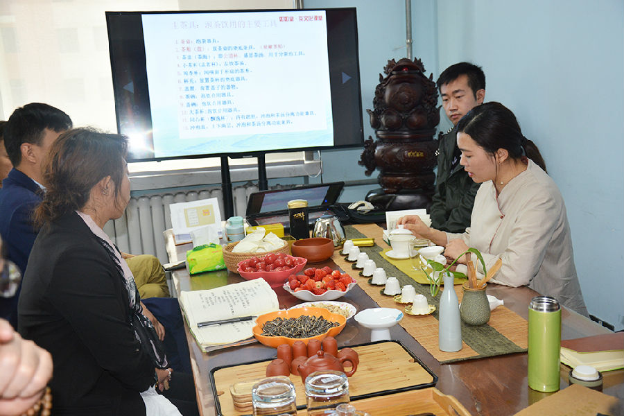 授課中楊老師以講解+演練的形式進(jìn)行授課 ,不僅對(duì)茶藝知識(shí)做了系統(tǒng)、科學(xué)、嚴(yán)謹(jǐn)?shù)闹v解,讓我們了解茶葉的演變史,懂得分清六大茶類,掌握不同的泡飲方式等基礎(chǔ)知識(shí),而且還講解了茶事服務(wù)流程及禮儀標(biāo)準(zhǔn),從行禮入座,再到泡茶奉茶,環(huán)環(huán)相扣,實(shí)用性極強(qiáng)。
