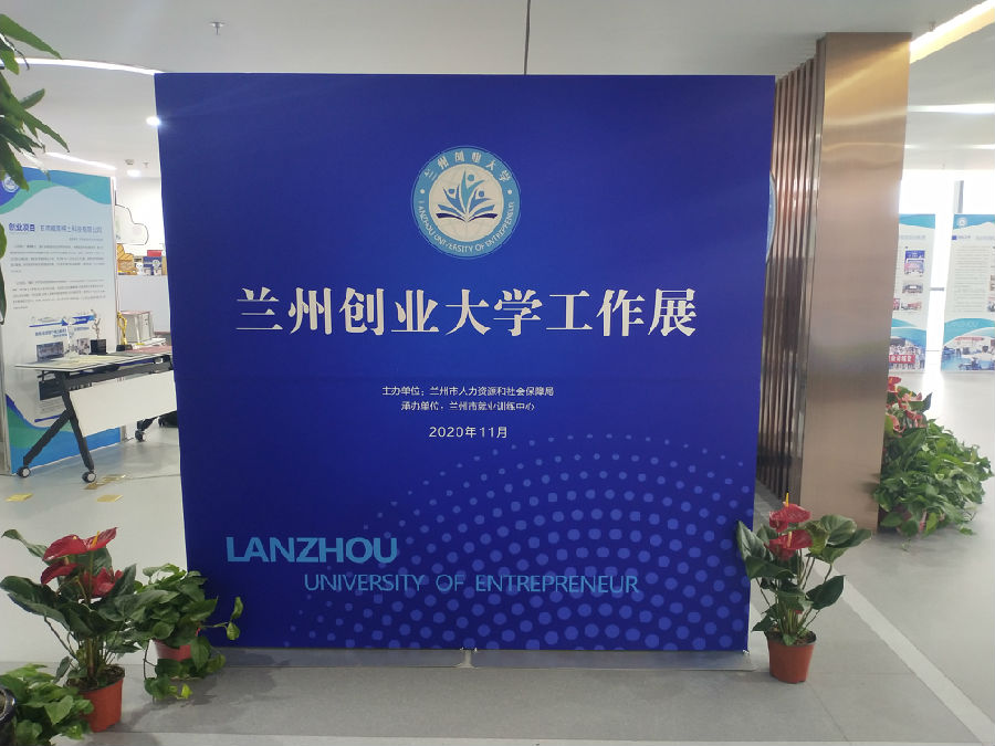 省委組織部副部長、省人社廳廳長周麗寧在蘭州創(chuàng)業(yè)大學(xué)工作展上實地查看創(chuàng)業(yè)項目成果。