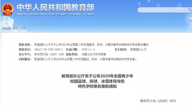 教育部辦公廳最新發(fā)布通知公布2020年全國青少年校園籃球、排球、冰雪體育傳統(tǒng)特色學校等名單,甘肅總計189所中小學上榜。