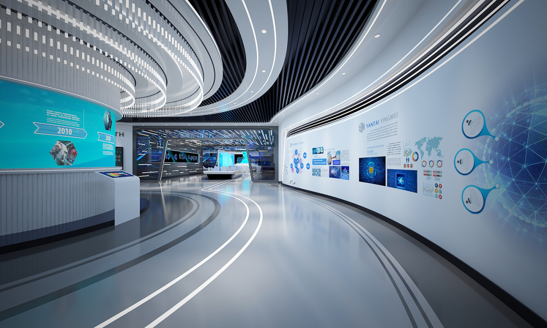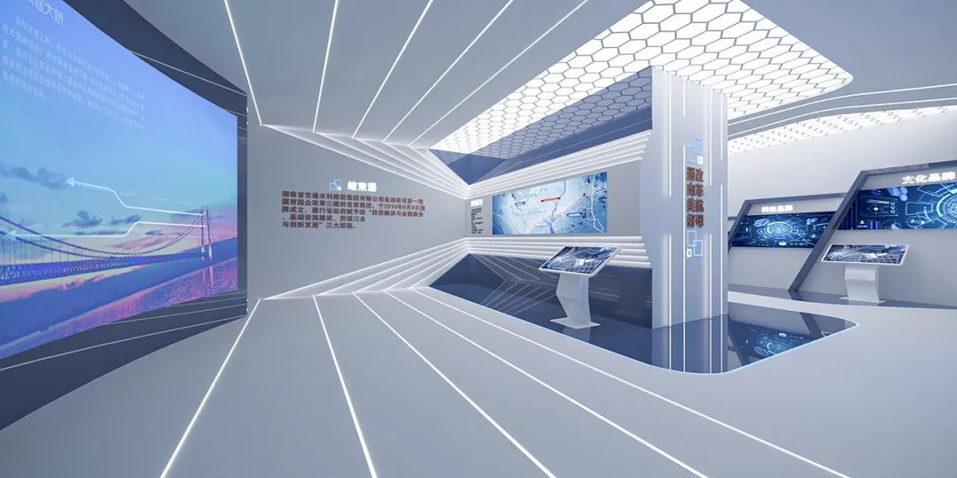 曲線代表了動態(tài)與柔美,不同于直線的中規(guī)中矩,曲線表現(xiàn)得更加自由與灑脫,在展廳應(yīng)用當(dāng)中能夠帶來更多的可能性。