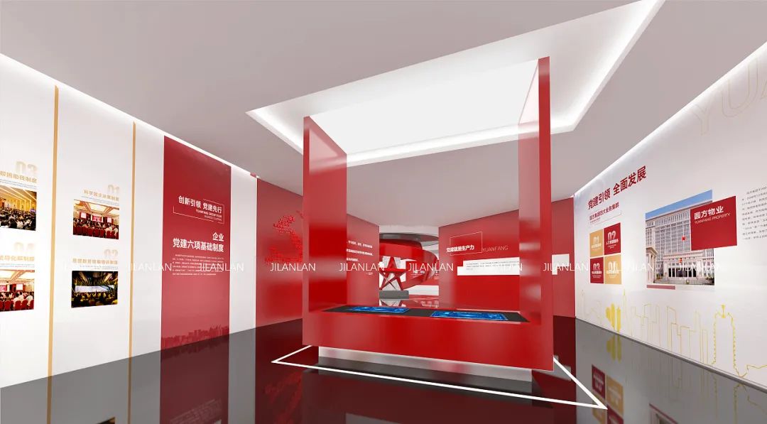 紅色代表了熱情與向上,設(shè)計師常在黨建展廳的設(shè)計當(dāng)中融入紅色元素來傳遞黨建文化思想與傳承紅色文化精神。