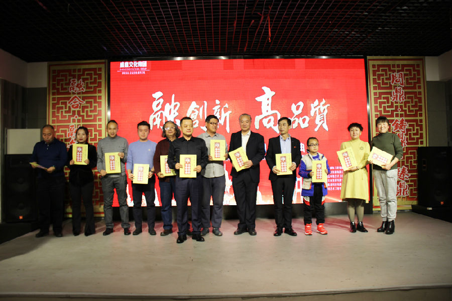 同時,受邀參加本次年會的嘉賓還有鴻運(yùn)地產(chǎn)集團(tuán)總經(jīng)理劉韌銳先生、甘肅省書協(xié)副主席、蘭州市書協(xié)名譽(yù)主席陳永革先生;蘭州市書協(xié)顧問金福祥;蘭州市書協(xié)顧問劉英先生;蘭州市書協(xié)副秘書長馬元先生;甘肅省書畫家協(xié)會常務(wù)副主席孫丕俊先生等十幾位書畫家,他們不僅觀看了盛鼎文化集團(tuán)家人們精彩的節(jié)目,并向集團(tuán)贈送了自己的書畫作品。同時,隴上書法名家剪紙世家的傳承人楊榮祖先生雖然不能親臨年會現(xiàn)場,但他向集團(tuán)贈送了自己精美的剪紙作品表示祝賀。
