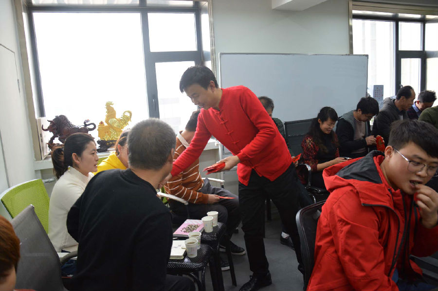 開門紅,樣樣紅,一帆風(fēng)順好彩頭,萬事如意步步高。盛鼎文化集團董事長白世平向全體員工致以節(jié)日的問候和祝福。還為每位員工發(fā)放寓意開工大吉的“開門紅”紅包,讓員工感受到過年的氣氛,圖個吉利、喜慶的彩頭。這不僅是一份心意,更是對新的一年殷切的期盼,預(yù)示著大家要調(diào)整狀態(tài),開始新一年的工作,鼓勵全員心往一處想,勁往一處使。