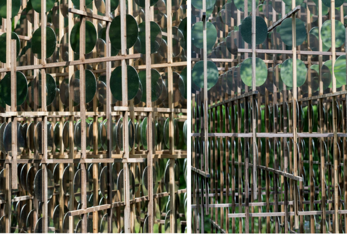 光線通過裝置反射形成巨大的發(fā)光體,引發(fā)了混亂的數(shù)字化效果。然而恰恰相反,該裝置的內(nèi)部構(gòu)件僅僅在有限的范圍內(nèi)進(jìn)行反射,既與周圍的環(huán)境相對又與它們密切相關(guān)。