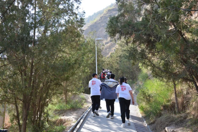 登山過程中,大家在歡聲笑語中,你追我趕向上攀登,相互幫扶,不甘落后,盡情釋放運動的激情,享受著集體活動帶來的樂趣。