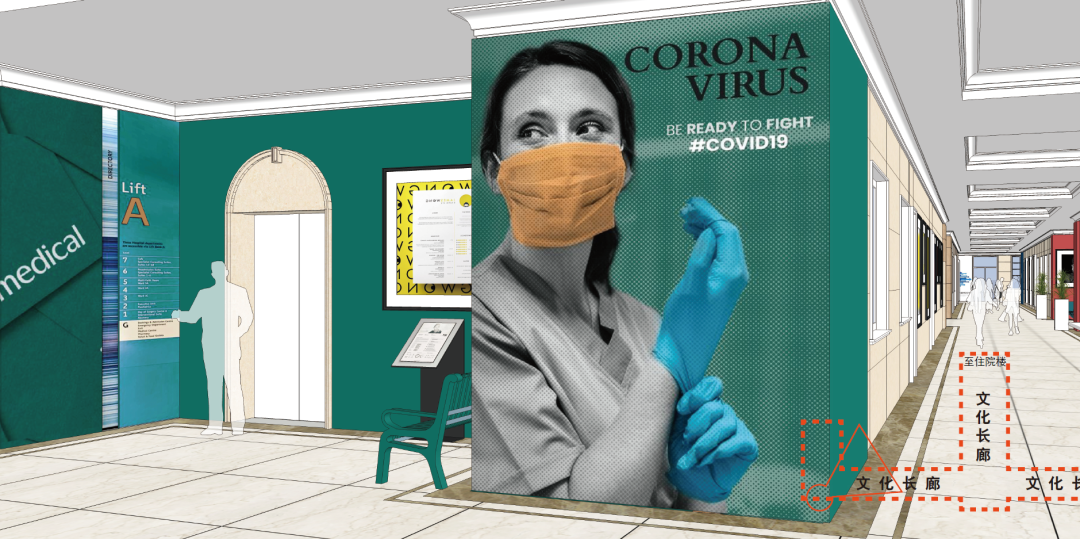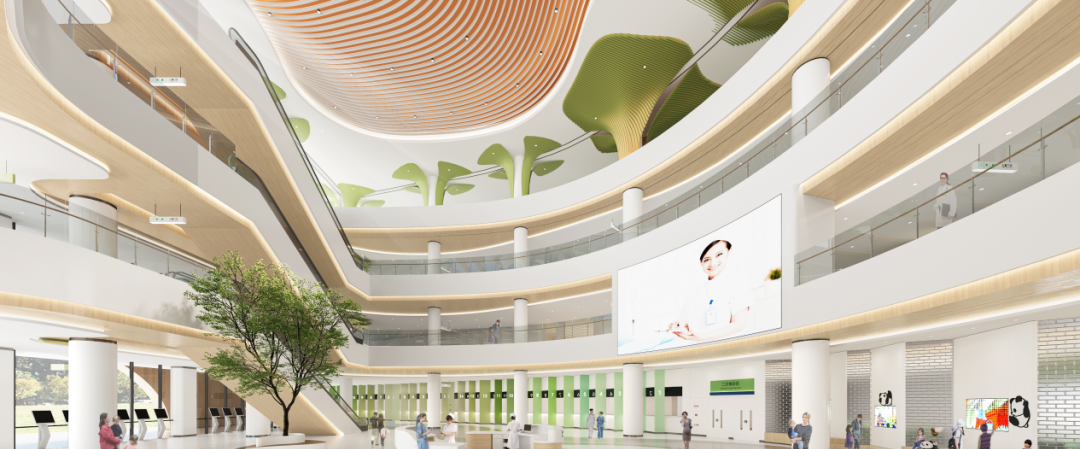 門診大廳是醫(yī)院建筑的主入口和主要形象,是患者和家屬較先接觸的地方。它不僅能夠體現醫(yī)院的品牌形象,而且還能起到良好的宣傳作用。此外,醫(yī)院門診大廳具有重要的功能,它是患者和家屬進行掛號、取藥、繳費等一系列操作的集散地,是整個院區(qū)的主要空間節(jié)點。因此,合理的空間形象、恰當的色彩搭配和醒目的視覺導引缺一不可。