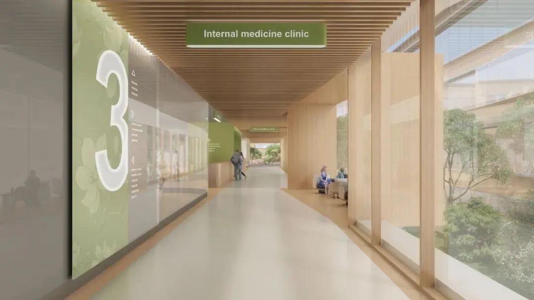 醫(yī)院景觀,通常以院區(qū)內的園林景觀為主,也包括門診樓等診療建筑內部的景觀,甚至醫(yī)院門前公共空間的景觀。不同功能區(qū)的景觀設計也要遵循不同的原則。
