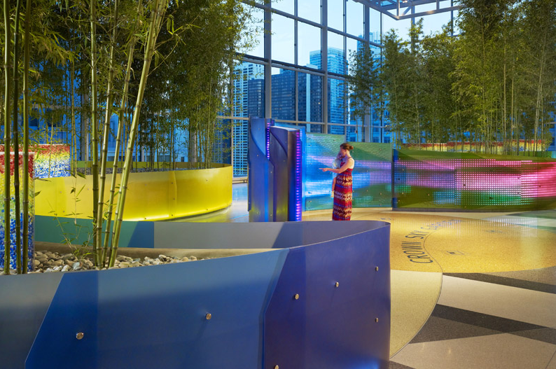 醫(yī)院尤其是大型綜合醫(yī)院,醫(yī)療主流通道往往不止一條,呈魚骨或網格狀。通節(jié)點是患者做出空間轉向、變換路徑等重要選擇的空間,明確的交通節(jié)點設計會大大提升尋路的效率。因此,主流通道的設計不僅是“路徑”的設計,而是“路徑――節(jié)點”的設計,應運用統(tǒng)一的造型語言處理。