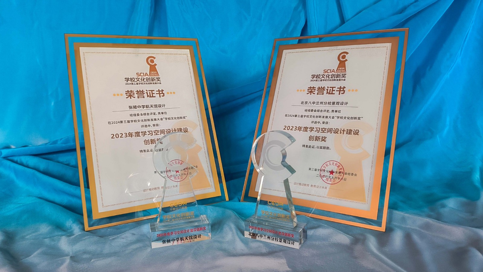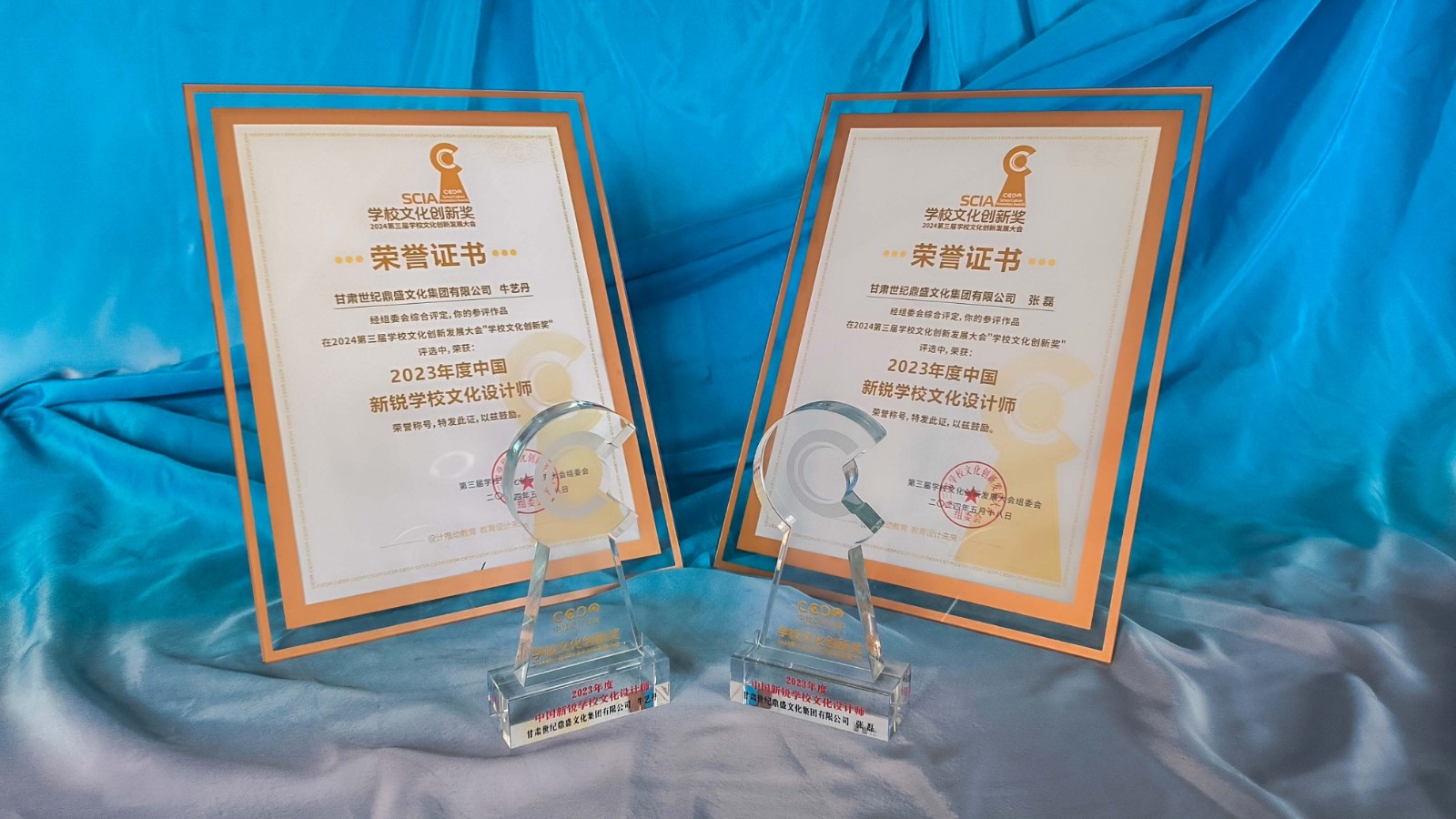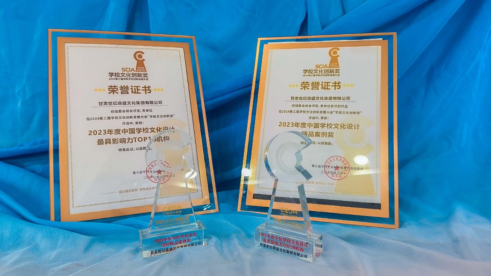 此外在本次大會中由甘肅世紀(jì)鼎盛文化集團(tuán)團(tuán)隊策劃設(shè)計的張掖中學(xué)航天館、北京八中蘭州分校景觀設(shè)計榮獲2023年度學(xué)習(xí)空間設(shè)計創(chuàng)新獎;此外,還榮獲了2023年度中國學(xué)校文化設(shè)計最具影響力TOP10機(jī)構(gòu)、2023年度中國學(xué)校文化設(shè)計精品案例、2023年度中國新銳學(xué)校文化設(shè)計師獎項。