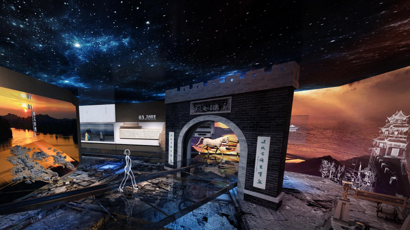 過渡門洞需要很好的兼顧“顯性”和“隱性”這對天然矛盾。顯性是需要有明顯的指示性,需要幫助參觀者明確內(nèi)容板塊的更迭。而隱性是需要與空間進行融合,不能破壞空間的敘事氛圍。