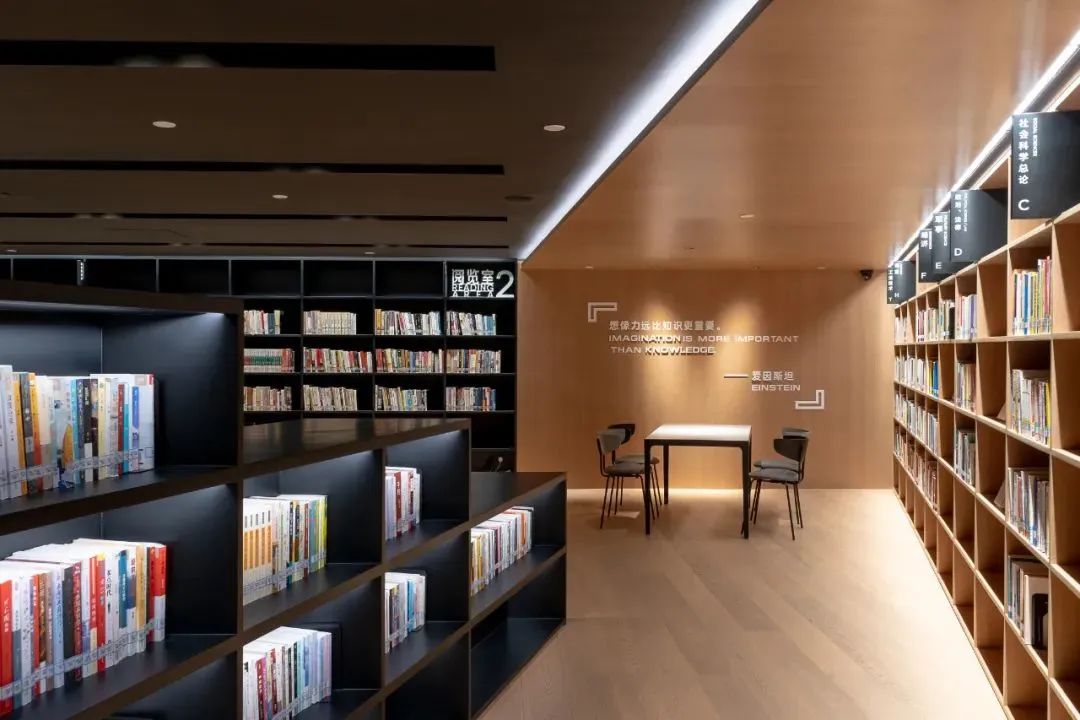 用木色和黑色搭配成極簡的室內(nèi)風(fēng),大臺階、坡道、空中連橋和螺旋樓梯提供了步移景異的游走空間,也成為流動空間的視覺元素。漸變式的天花除了強化主空間外,也增強空間的縱深感和律動感。通過設(shè)計將黨建內(nèi)容自然地引入普通的社區(qū)生活中使黨建這一略帶嚴(yán)肅、訓(xùn)誡的內(nèi)容變得更加普適宜人、豐富有趣。