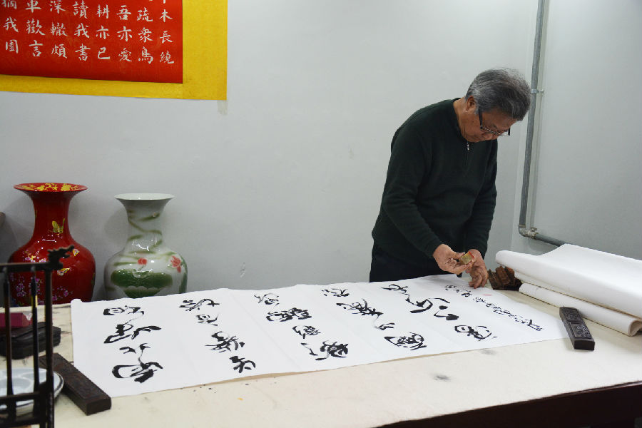 茶話會(huì)結(jié)束后,大家宣紙研墨,在輕松的氛圍中進(jìn)行書法交流。