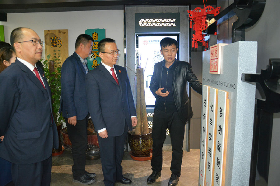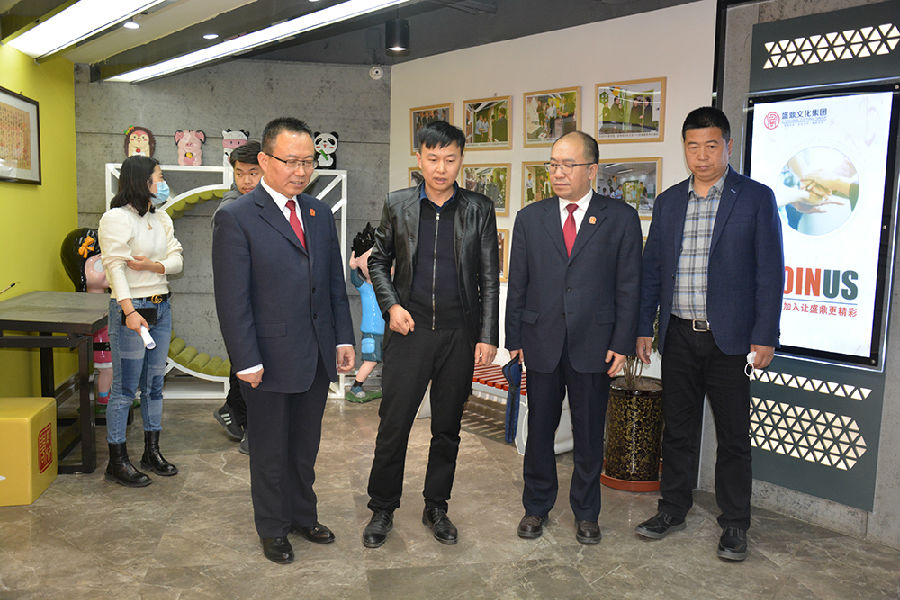 2020年4月16日下午,省高院“優(yōu)化營商環(huán)境暨加強(qiáng)產(chǎn)權(quán)司法保護(hù)工作”領(lǐng)導(dǎo)小組辦公室主任、二級高級法官尹秉文,省高院民三庭庭長、三級高級法官劉恒,省高院國家賠償辦公室副主任、四級高級法官龍鑫等領(lǐng)導(dǎo)小組一行在西部創(chuàng)客CEO楊建斌的陪同下,蒞臨盛鼎文化集團(tuán)走訪調(diào)研。